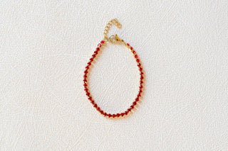 The Garnet Tennis Bracelet redefines a classic silhouette with a polished gold finish and vibrant garnet crystals. Combining elegance with versatility, it transitions effortlessly from evening occasions to everyday wear. Designed for stacking and mixing, it allows you to create personalized, sophisticated looks with ease.