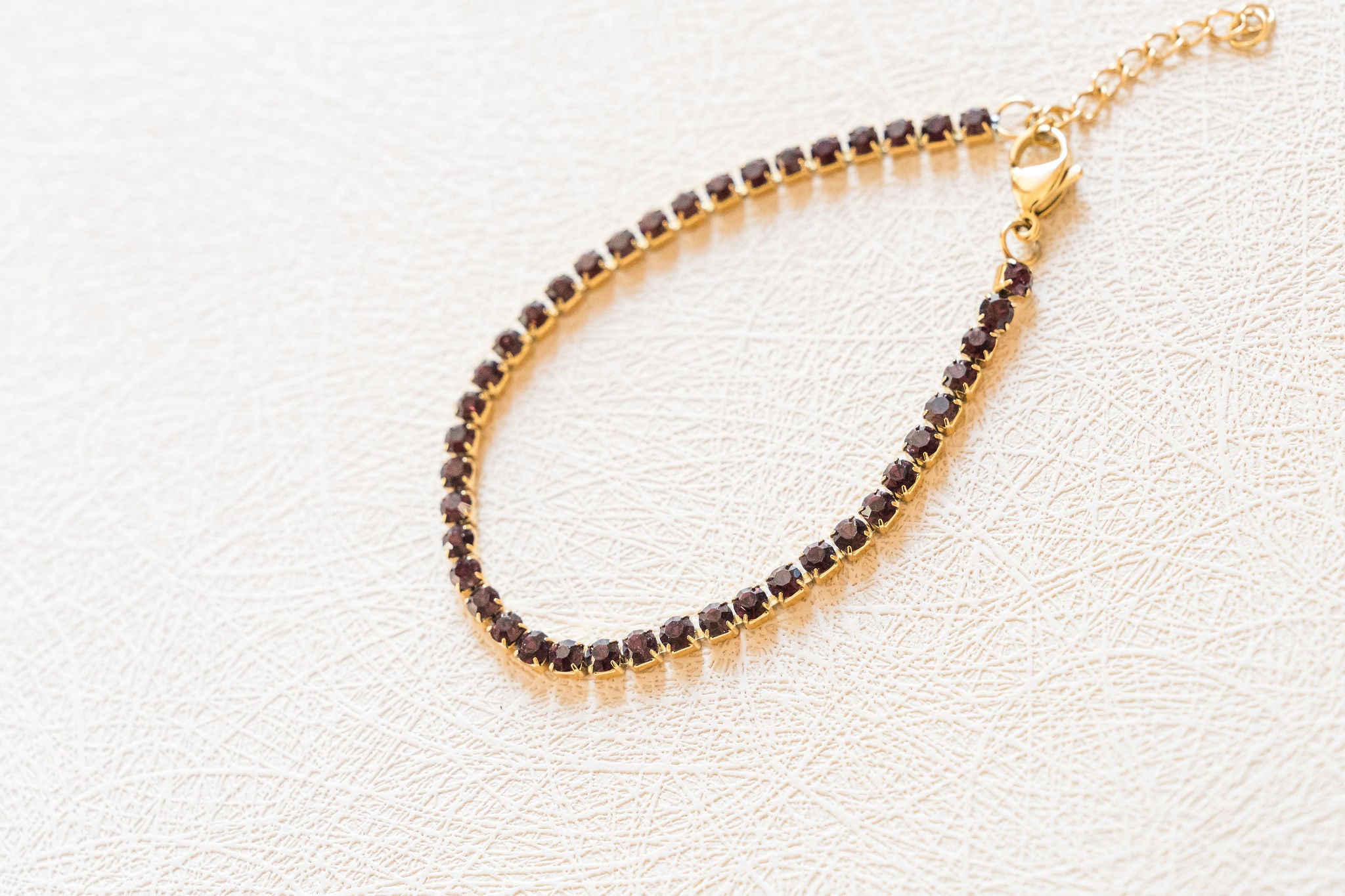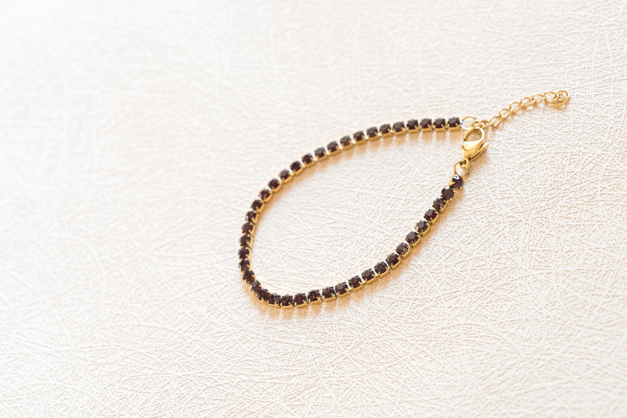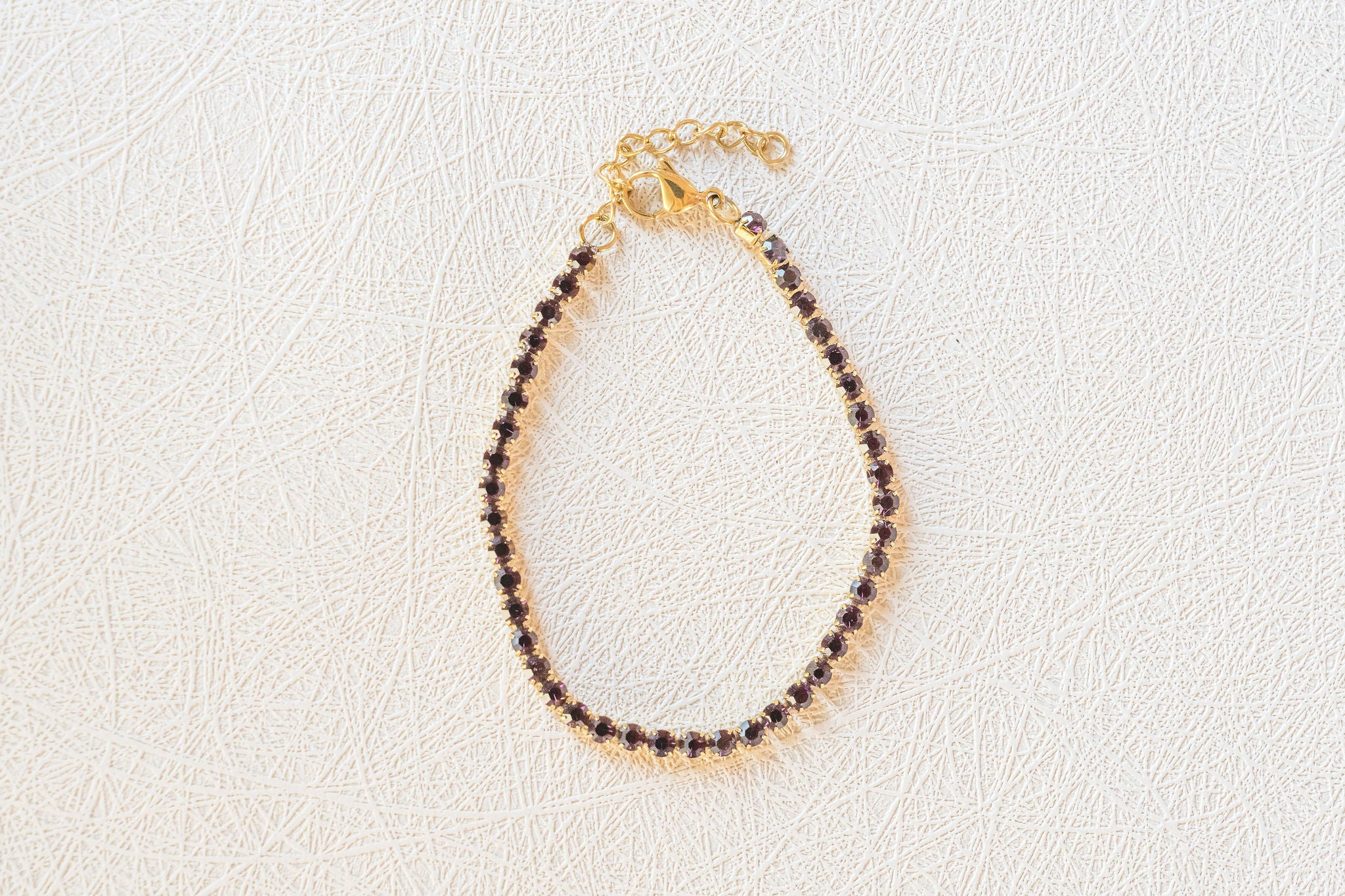The Garnet Tennis Bracelet redefines a classic silhouette with a polished gold finish and vibrant garnet crystals. Combining elegance with versatility, it transitions effortlessly from evening occasions to everyday wear. Designed for stacking and mixing, it allows you to create personalized, sophisticated looks with ease.