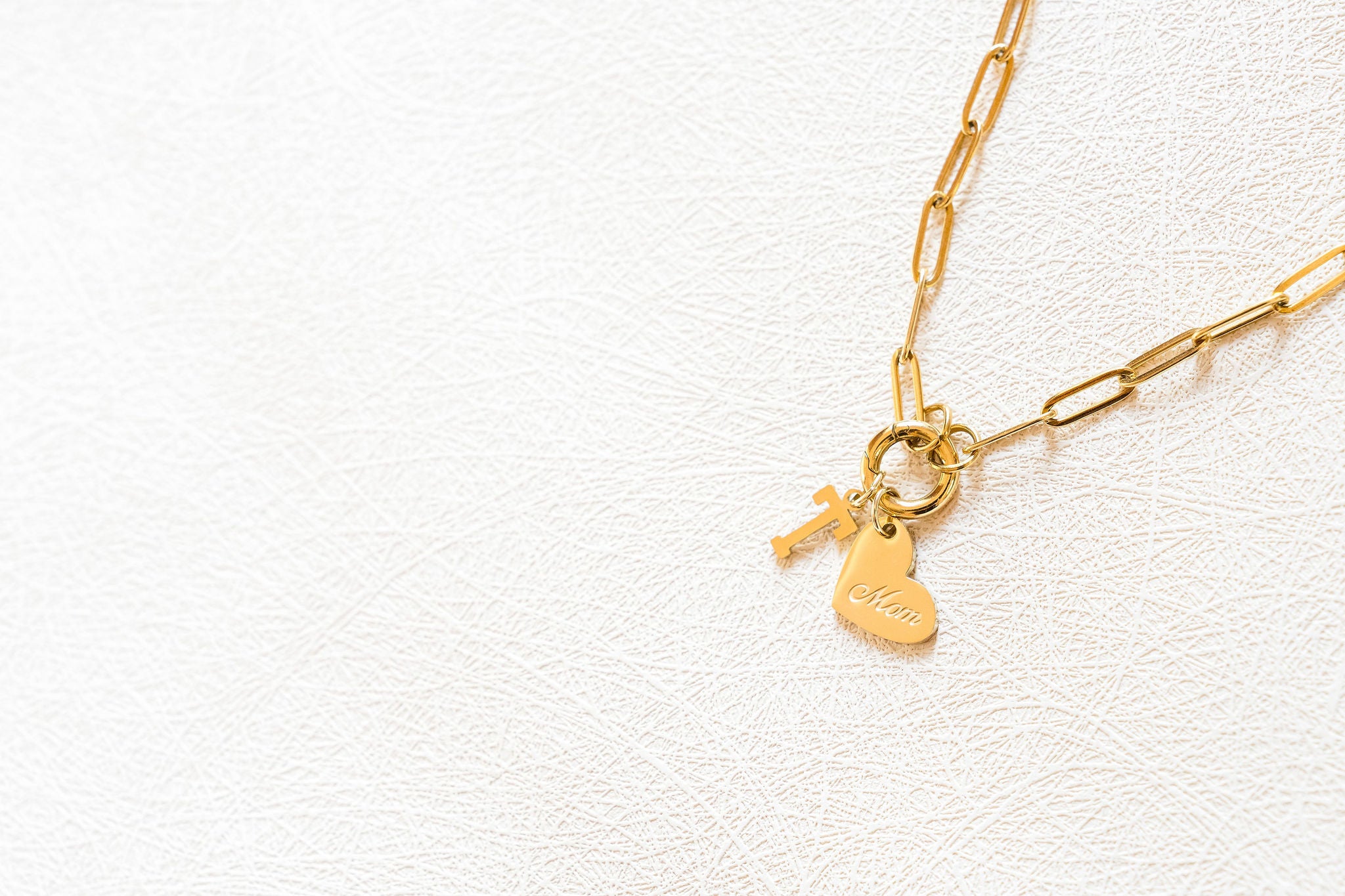 A golden heart engraved with “mom”—timeless, classic, and full of love. From carpool to kickoff, snack duty to sideline cheers—Mom’s been the real MVP all along. This charm is great for layering with player numbers or initials, so you can wear your heart and your team together.
