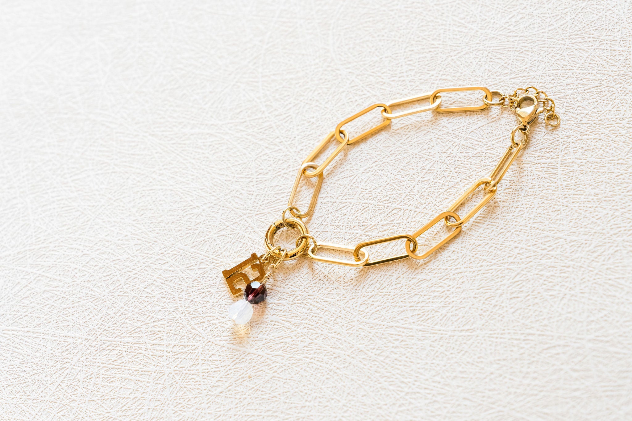 This gold paperclip chain bracelet, embellished with maroon-and-white crystals and featuring a polished #12 charm, delivers both strength and spirit. Designed for game days, victory celebrations, and all proud moments, it offers versatile wear—perfect for stacking with other pieces or making a bold statement on its own.
